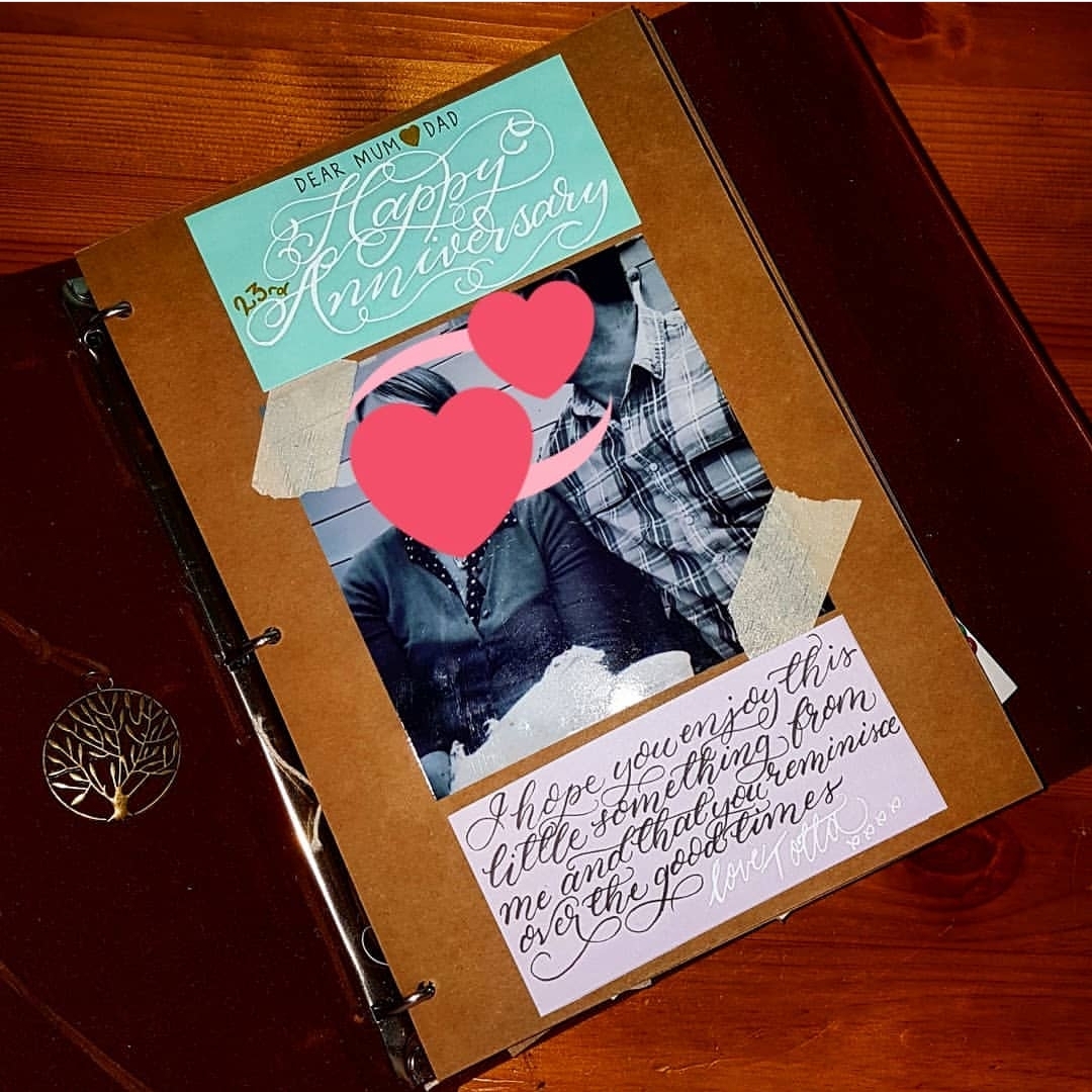 Looking for quirky gift ideas? Try making a scrapbook! I was commissioned to write captions for the photos in this one which is an anniversary present for the clients parents. I had a lot of fun doing this piece!
